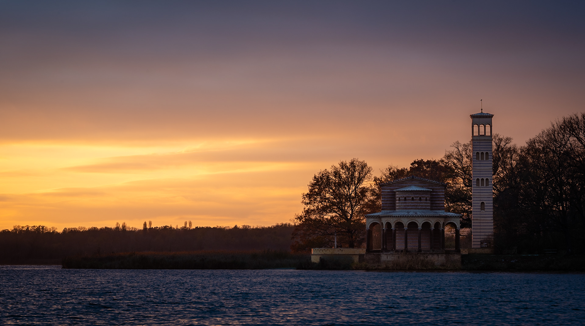 On Location - Blick auf die Insel Werder im Sonnenuntergang
